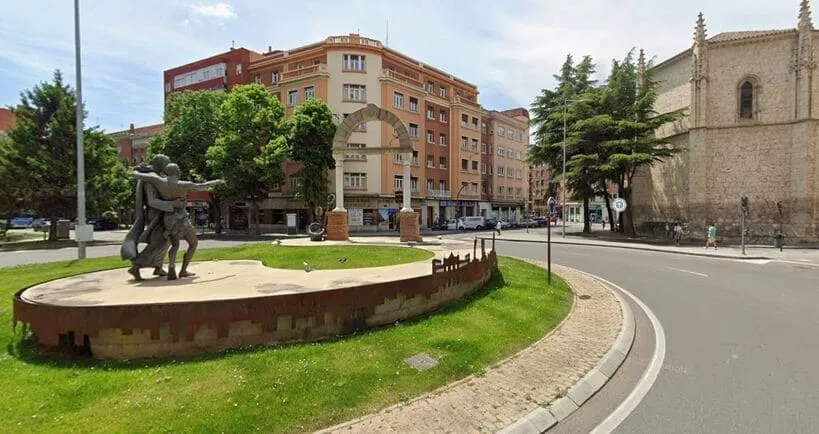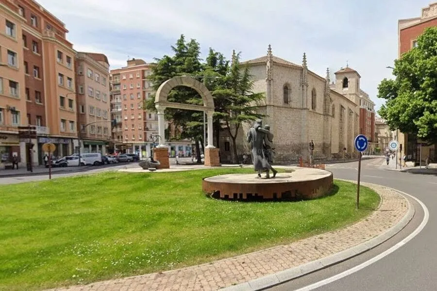Fue en este mismo lugar –antes de la demolición de la muralla que circundaba a la ciudad, junto a la puerta de San Lázaro y en el barrio de la Puebla donde la Orden Hospitalaria de San Juan de Dios levantó su hospital en Palencia. Del edificio, cuya fachada aún se conserva se rescató la idea de repetir su pórtico de entrada enfrentado a la ciudad y como marco del conjunto del escultor Oscar Aragón que simboliza la ayuda que un miembro de esa orden ofrece a un necesitado.